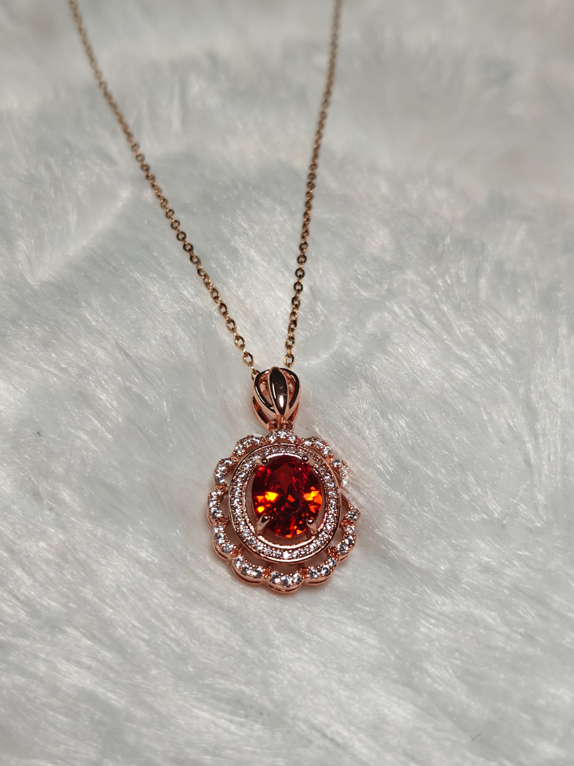 Anti Tarnish Red Stone Pendant Set